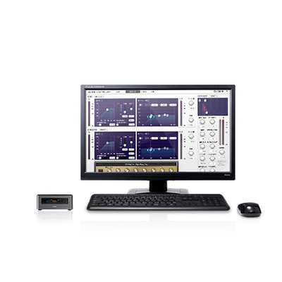 ニコ生・YouTuber向けパソコンには、ミキサーとセットで卓上においても邪魔にならないコンパクトさと、ノートパソコンよりも高い拡張性が魅力の「インテル(R) NUC」を採用。モニタの後ろに設置することも可能で、省スペースかつスタイリッシュな作業環境を実現します。さらに静音性にも優れ、気になるノイズの発生がほとんどありません。