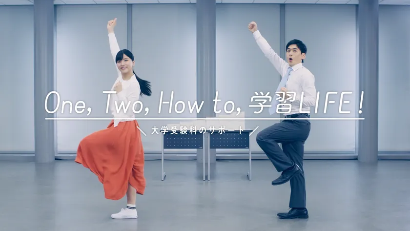 「One, Two, How to, 学習LIFE!」をコンセプトに、生徒&担任が全編セリフを使わず、身振り手振りの芝居やダンスのみで代ゼミでの勉強生活を演じる音楽ムービーです。