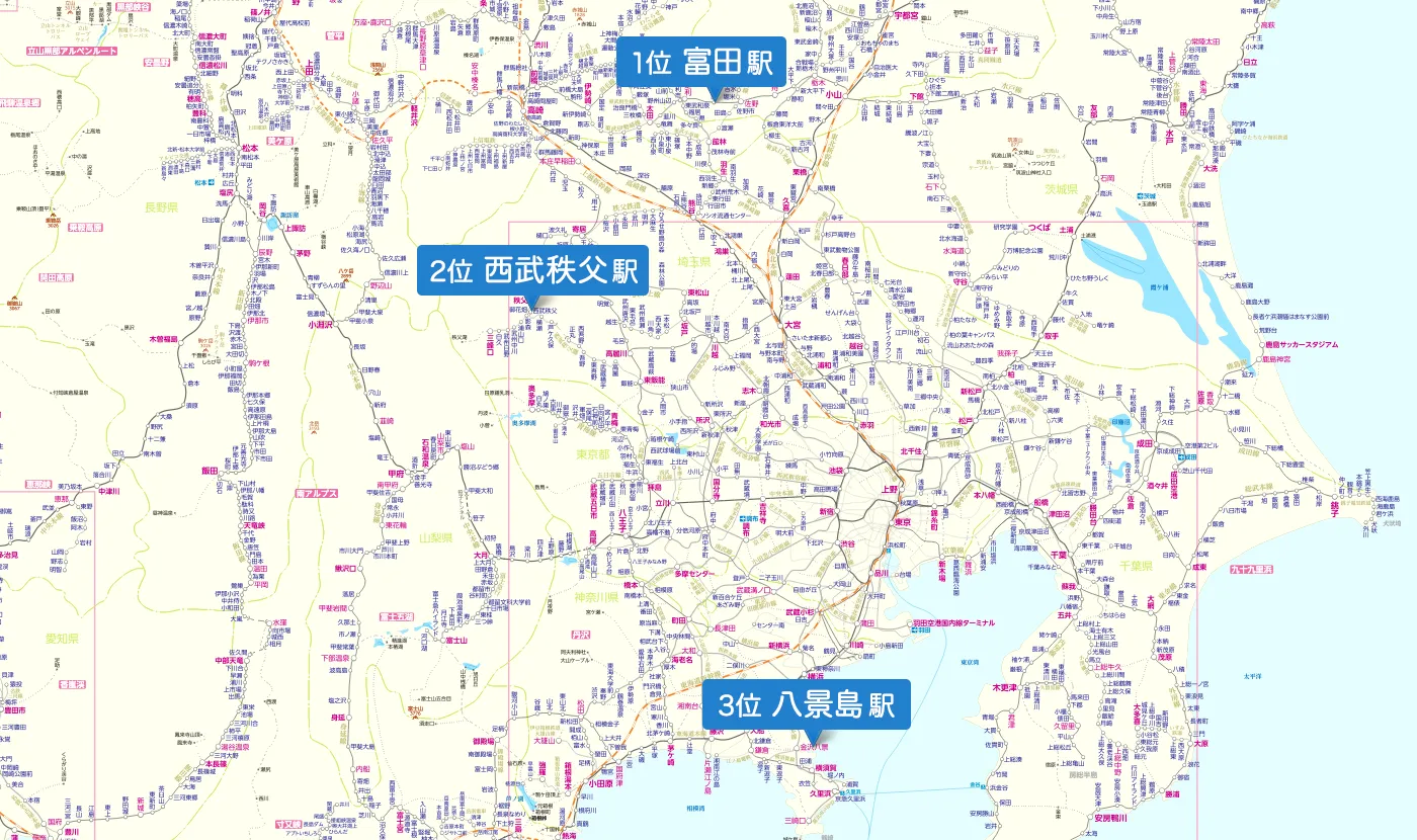 西武秩父駅と八景島駅が逆転! 富田駅は2年連続の1位に ゴールデンウィークによく検索された駅ランキング