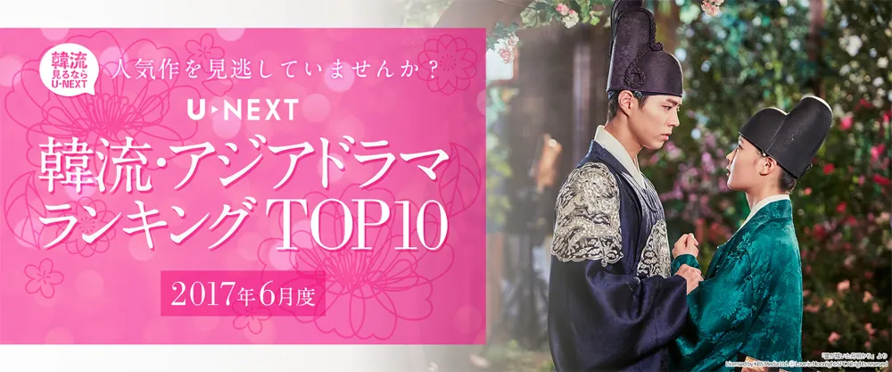 株式会社U-NEXT(本社:東京都渋谷区、代表取締役社長CEO:宇野 康秀、以下「当社」)は、当社が運営する映像配信サービスU-NEXT(以下「U-NEXT」、URL:http://video.unext.jp)の、2017年6月度 「韓流・アジア」ジャンルの視聴ランキング TOP10を発表いたしました。