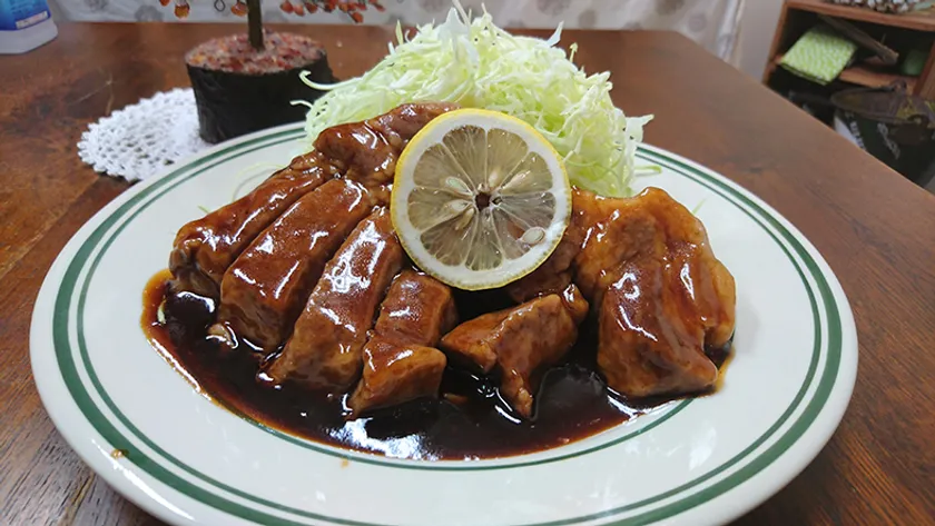 広島県産ブランド豚『瀬戸内六穀豚』の豚肩ロースを肉厚で柔らかくジューシーに仕上げたトンテキ。特製だれに加えて、尾道産のレモンをたっぷり使った自家製『尾道れもんだれ』の爽やかな酸味が、豚の旨味をぐっと引き立てます!