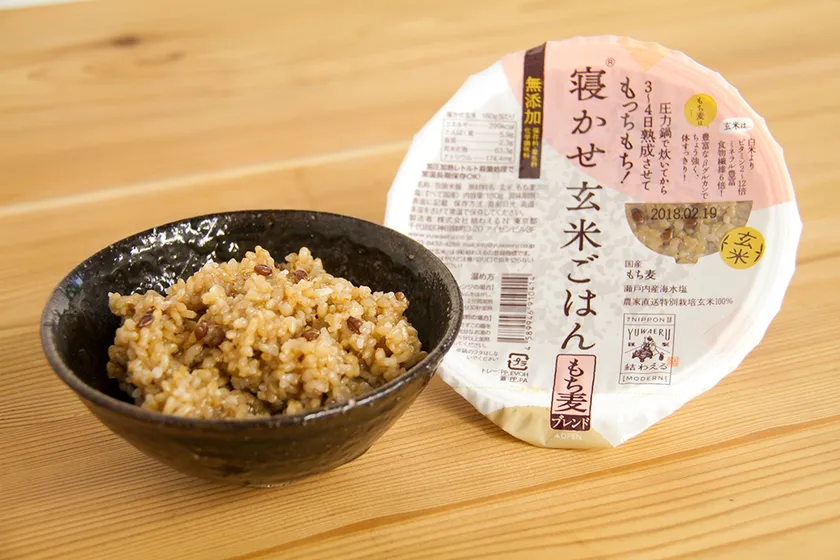 結わえる本店、いろは池袋店・渋谷ヒカリエ店で大人気の寝かせ玄米、そのもちもち感や旨みをそのまま詰め込んだ寝かせ玄米レトルトパック。