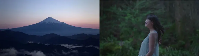 雄大な富士山を背景にしてCMは始まります。荘厳の自然の中にいるCMキャラクターのRihoさんが水の魅力をより引き立てています。富士山の水の魅力を伝えることで、プレミアムウォーターがその水との暮らしを提供できることを伝えたいと考えました。