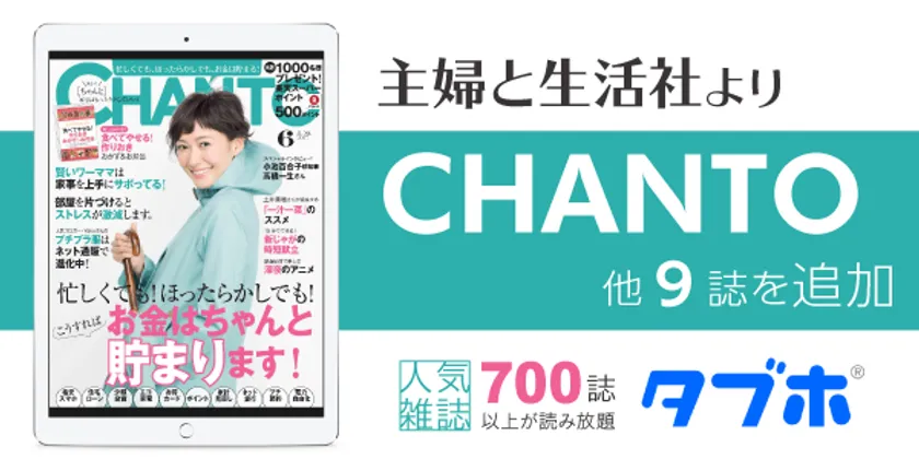 働く女性のための生活情報誌「CHANTO(ちゃんと)」や季刊誌、 ムックなど、一挙に9誌追加し、国内最大級の700誌以上に