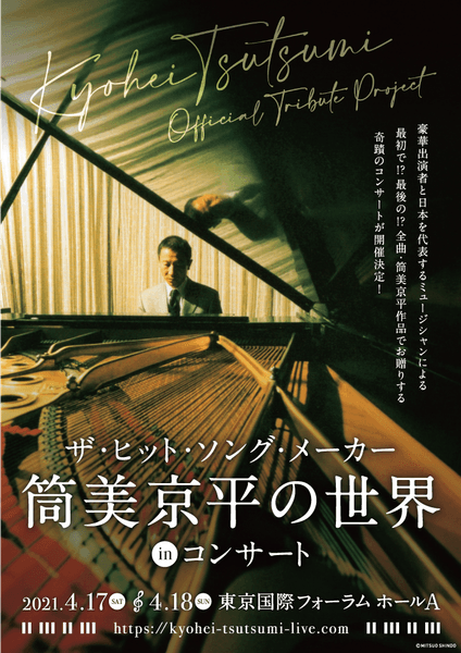 2021年4月17日(土)18日(日)東京国際フォーラム ホールAにて、「~筒美京平 オフィシャル・トリビュート・プロジェクト~ ザ・ヒット・ソング・メーカー 筒美京平の世界 in コンサート」を開催いたします。