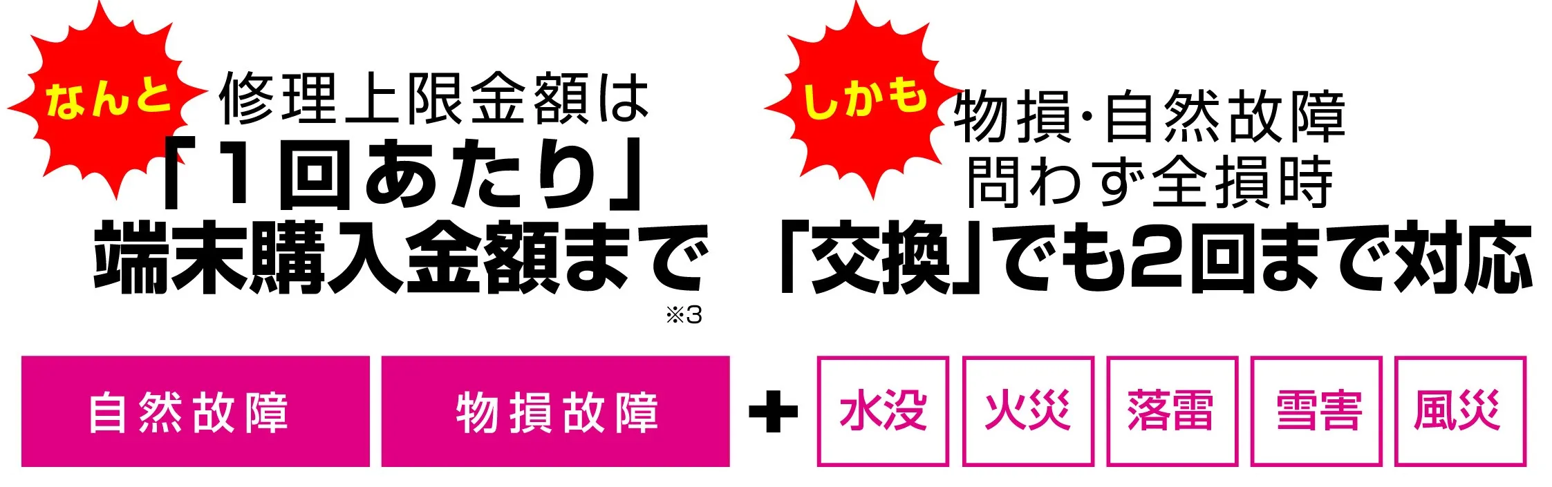1.修理上限金額は、「1回あたり」端末購入金額まで※3
