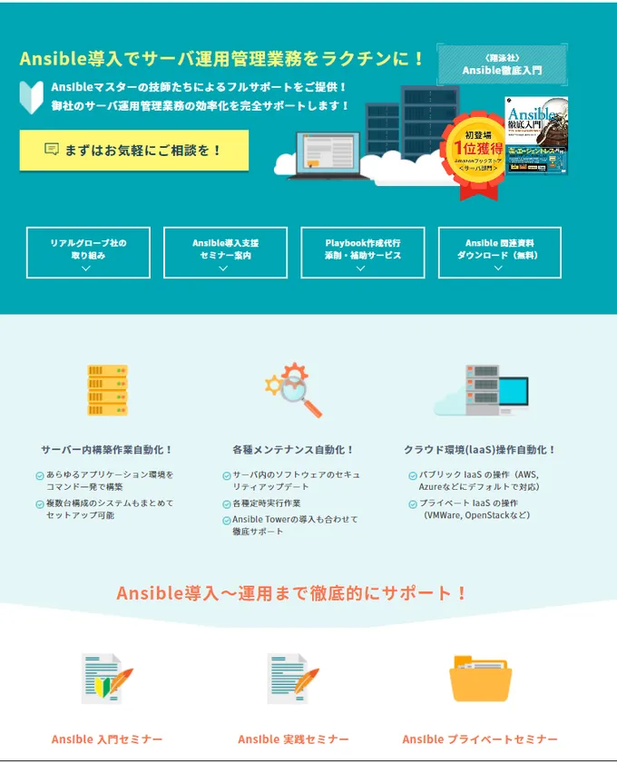 貴社のサーバ運用管理業務をラクチンに! Ansible(アンシブル)導入のエキスパートによる 『Ansible フルサポート』サービスが リアルグローブより提供開始!
