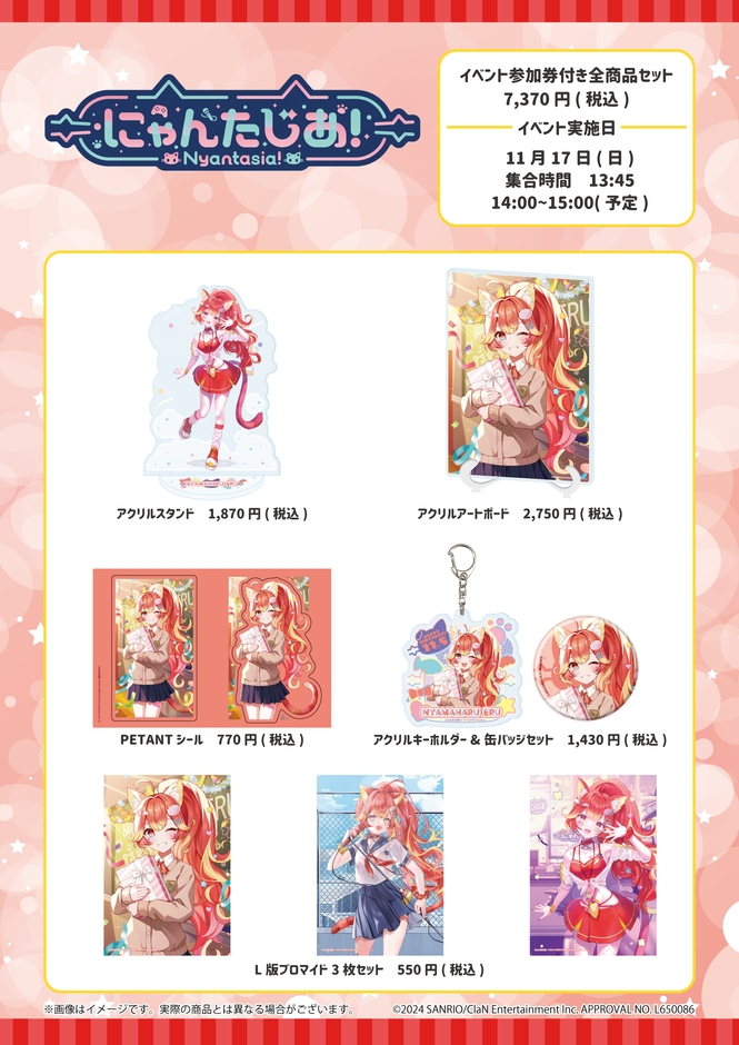株式会社ClaN Entertainment(本社:東京都港区 代表取締役社⻑:⼤井 基⾏、以下ClaN)は、株式会社サンリオ(本社:東京都品川区)と共同で行うVTuberプロジェクト「にゃんたじあ!」に所属する「若魔陽エル」が11月5日に誕生日を迎えたことを記念し、誕生日グッズの販売を行います。