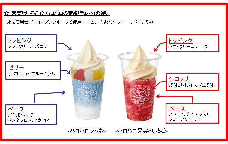 ☆「果実氷いちご」とハロハロの定番「ラムネ」の違い
