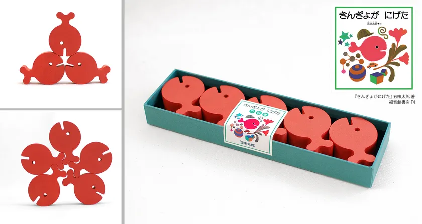 子どもから大人まで、国内外で世代や国境を越えて愛され続けている五味太郎の絵本。その代表作『きんぎょがにげた』(1977年初出、福音館書店 刊)の発表40周年を記念して、木工作品のデザインを手がけるアトリエ倭とともに、積み木を企画・デザインしました。