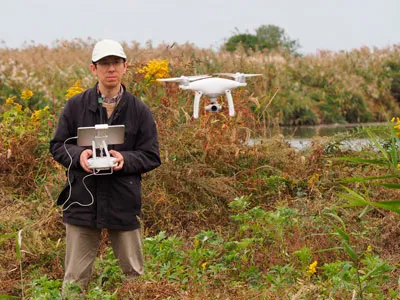 開発により変容する生き物と人々の生活をテーマに、長良川、琵琶湖、奄美大島、ラオス・メコン川などをフィールドにして、カメラマンと研究者、環境コンサルタントとして活動中。環境コンサルタントとして環境NGO、行政と連携。河川構造物の分析、評価を行い、環境分析のベースマップとして、また、「流れ」の分析などにドローンの可能性の高さを感じている。