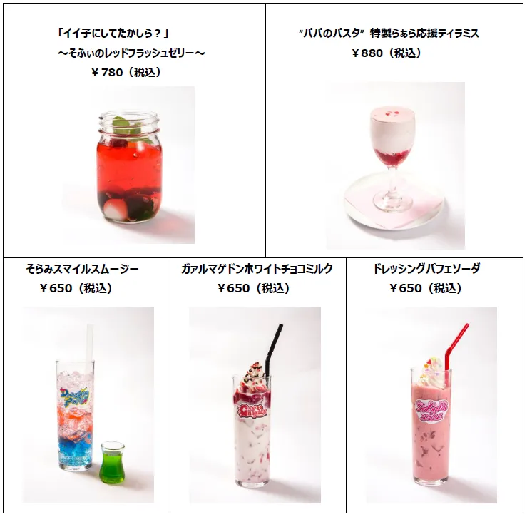 こちらのカフェでは、各キャラクターをイメージしたメニュー(全9種)の他、店内にはユメかわいい空間が広がります。また、隣接した物販店舗の『コトブキヤ立川本店』では、プリパラコーナーを展開し、関連商品の販売を行います。開催日程は、2017年7月15日(土)~2017年8月31日(木)まで。