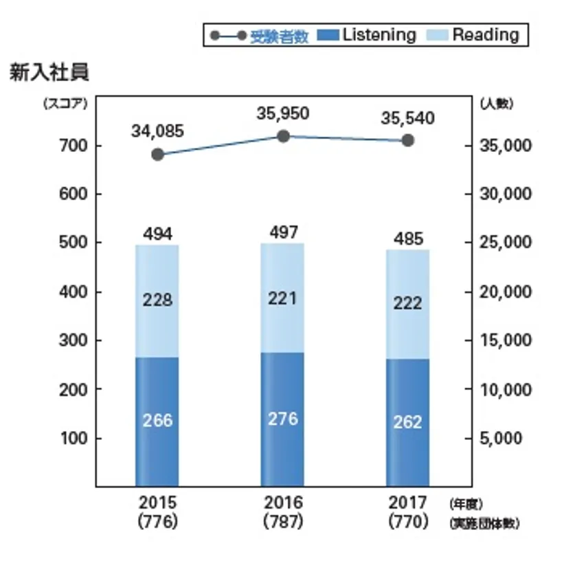 TOEIC(R) Listening & Reading団体特別受験制度 2017年度新入社員の平均スコアは485点