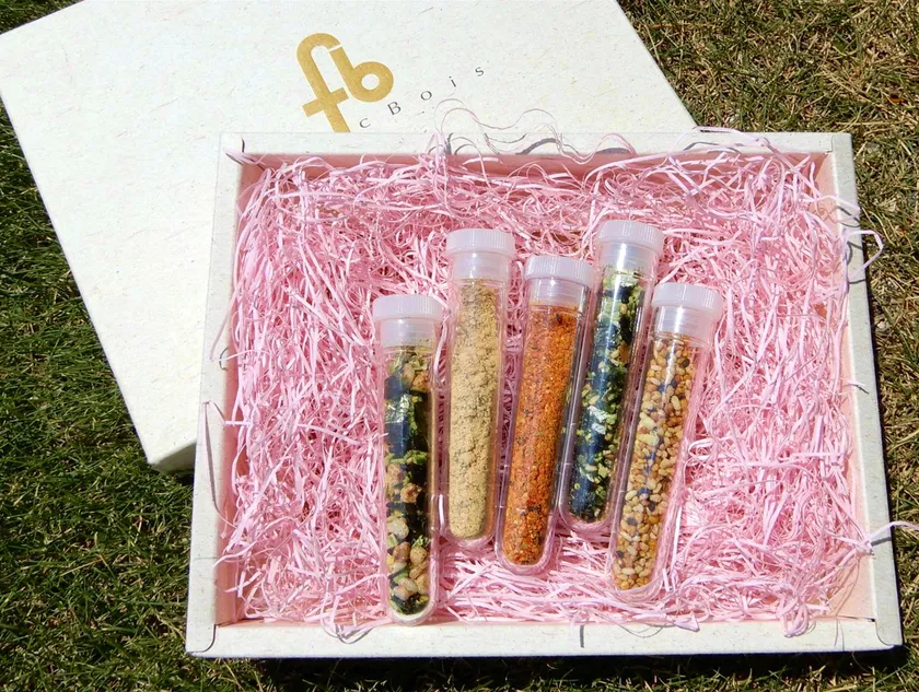 本場フランスでは、ショコラに塩や香辛料のスパイスをふりかけることでより一層の甘さとコクを楽しむ食べ方も主流です。当店の生チョコも、信州の名産にちなんだスパイスをセットでお届けいたします。