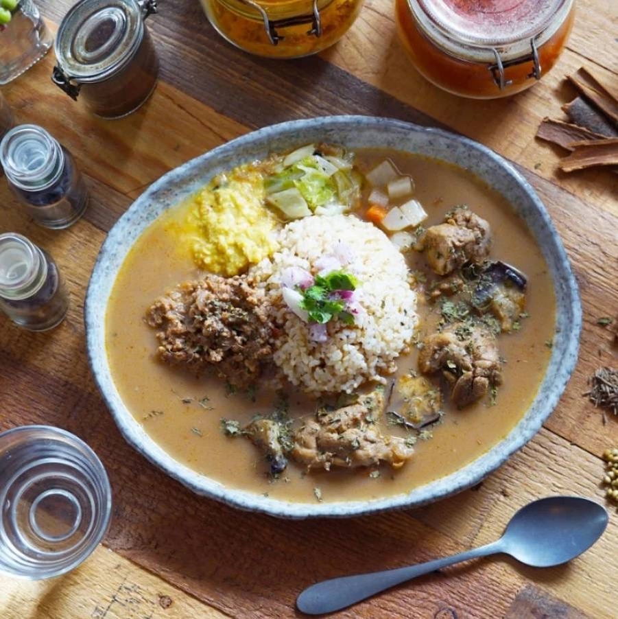 軟骨入り鶏キーマ×明太鶏キーマのあいがけカレー