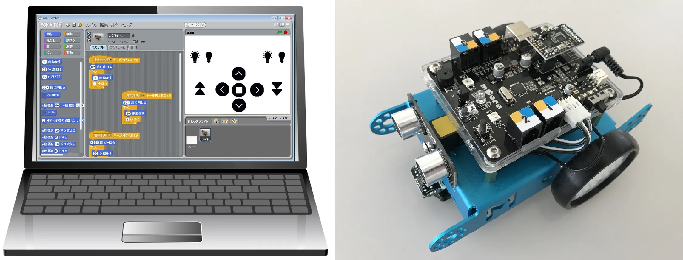 ▲感覚的に操作できるプログラミングソフトで、車型ロボットを操作!