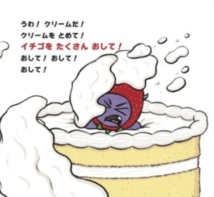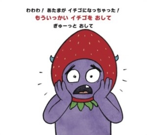 ケーキにのっている「謎のイチゴ」を指でつっつくと、ふしぎなモンスター・ラリーの頭が突然イチゴに!