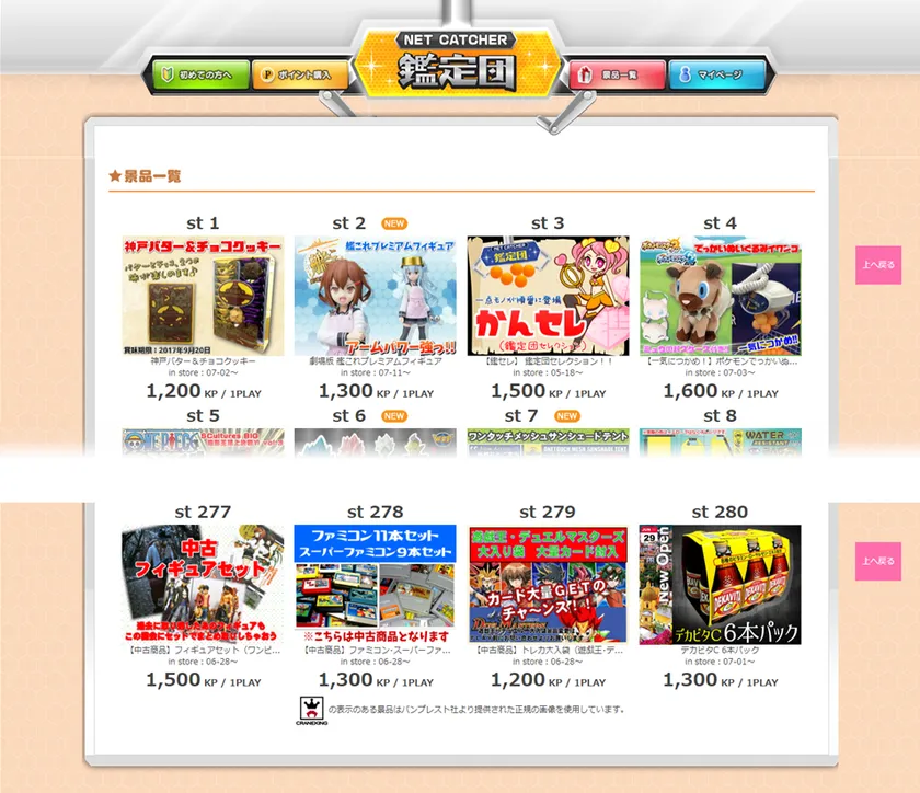 最大の特徴は、圧倒的なブース数を生かした「品揃え」です。フィギュアやぬいぐるみといったアミューズメント専用景品はもちろん、ご当地グルメ・アパレル衣料・生活日用雑貨など、通販サイトさながらの商品を多数展開。また静岡鑑定団グループで保有する「中古在庫」を活用し、『全巻セットコミック』『最新ゲームソフト』『トレーディングカード』『ブランド時計』など、独自のラインナップで競合サイトとの差別化を図っております。