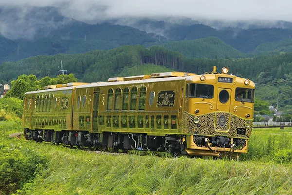 湯布院(ゆふいん)へと向かう、リゾート感あふれる列車「ゆふいんの森」。木のぬくもりあふれるインテリアが目を引く車内、慈恩(じおん)の滝や伐株山(きりかぶさん)といったスポットも目にできる車窓からの風景が魅力的。フォトパネル貸し出しで写真撮影ができたり、到着前には客室乗務員による観光案内も受けられたりと、観光客向けのサービスも充実しています。