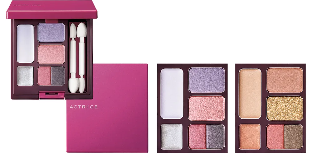 目もとにのせた瞬間、さらさらとした質感に変化し、まぶたにぴたっと密着する“クリームタイプ”2色と、しっとりやわらかなタッチの“パウダータイプ”4色をセット。個性をひきたてる多彩なアイメイクが楽しめるパレットです。繊細なパールの輝きとピンクのアクセントカラーで華やかな目もとに導きます。