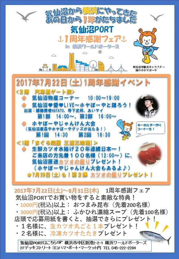 ホヤぼーやも登場!「気仙沼PORT 1周年感謝フェア」 横浜ワールドポーターズで7月22日(土)より開催