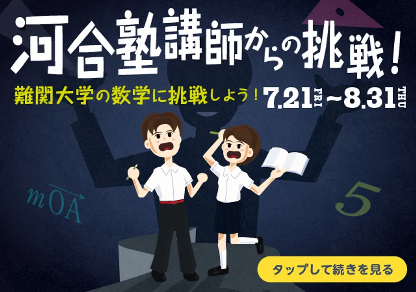 2017年7月21日 09:30EdTechスタートアップのアルクテラス株式会社(本社:東京都世田谷区、代表取締役社長:新井 豪一郎、以下 アルクテラス)は、河合塾グループの株式会社河合出版と連携し、難関大学受験生向けの数学の難関問題イベントを行います。