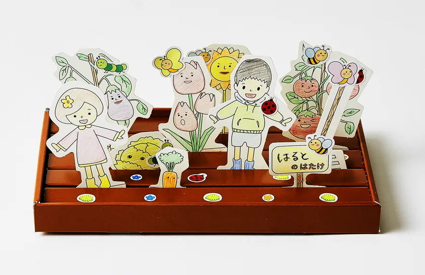 「立体ぬりえ UERUN」は色を塗るだけでなく、パーツを土台に飾って遊べる新しいタイプのぬりえです。子どもたちがぬりえ・工作遊びを通して身近な「やさい」や「のりもの」と親しみ、作品をつくる喜びを体験できるよう、願いを込めて開発されたアイテムです。