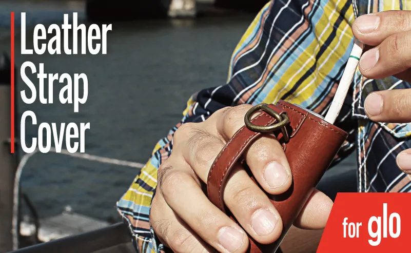 背面に独自構造のストラップが付いた、PUレザー素材のglo専用保護ケースです。