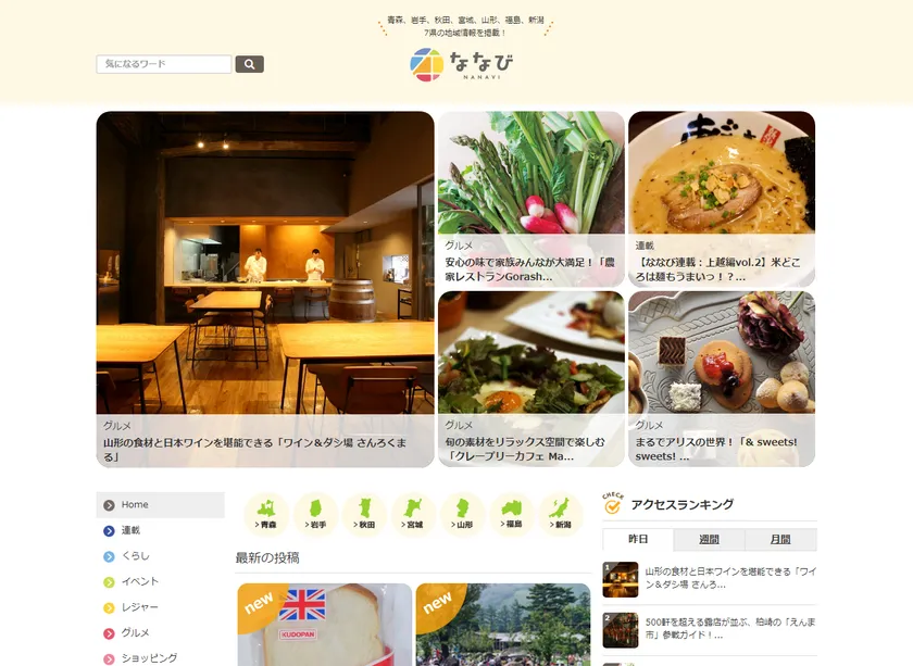 「ななび」は青森県・岩手県・秋田県・宮城県・山形県・福島県の東北6県と新潟県の情報を、現地からお届けする地域密着型情報サイトです。現地で直接取材した情報や、各自治体の発信する情報をもとに、地域住民の目線でその地域に根ざした情報を発信していきます。