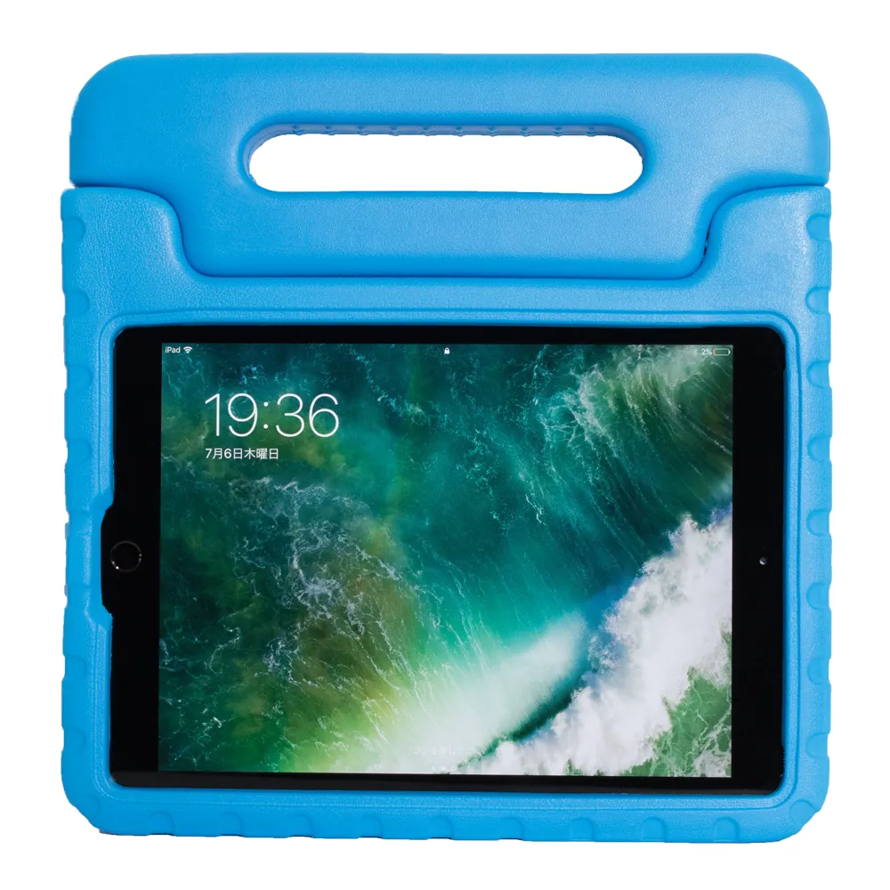 軽量ながらも、様々な環境に強く、丈夫なEVA素材でできたiPadケースです。丈夫なEVA素材を使用しているため、落下の衝撃や衝突に強く、有害な物質を含んでいないため、小さいお子様でも安心して使用できます。ケースに入れたままでもカメラ撮影、Lightningケーブルやイヤホンも接続できます。