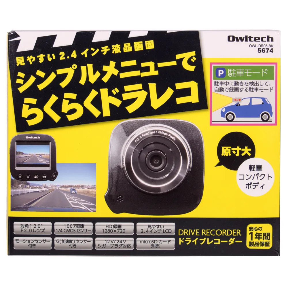 PC周辺機器及びスマートフォン・タブレットアクセサリーの製造・販売を行う株式会社オウルテック(所在地:神奈川県海老名市、代表取締役:東海林春男)は、見やすい2.4インチ液晶画面を搭載したドライブレコーダーのエントリーモデル「シンプルメニューでらくらくドラレコ」『OWL-DR05-BK』を量販店並びに直販サイト(オウルテックダイレクト)にて8月上旬より発売致します。