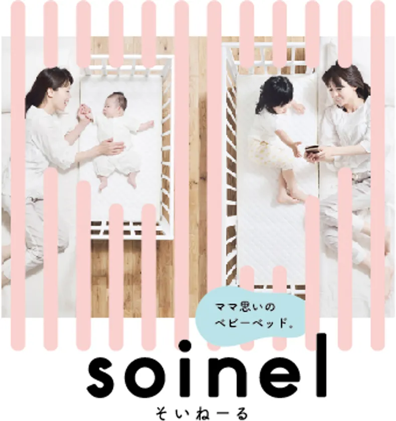 「そいねーる」は、大人のベッドにつけて赤ちゃんと添い寝をすることができるベビーベッドです。その新型として、キャスターがついて寝室から移動することができる「そいねーる+ムーブ」、さらに延長パーツをつけることで4歳頃まで長く使うことができる「そいねーる+ロング」を販売いたします。