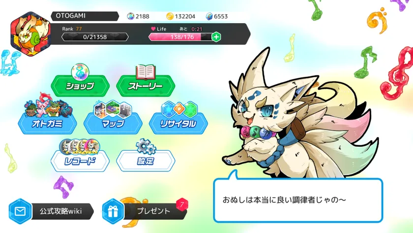 「TUNEモード」にも、条件クリアのハードルができたことで、音楽ゲームとしての実力を上げながらプレイするもよし、お気に入りのオトガミを育て、「BATTLEモード」を突破していくもよしとなっております。