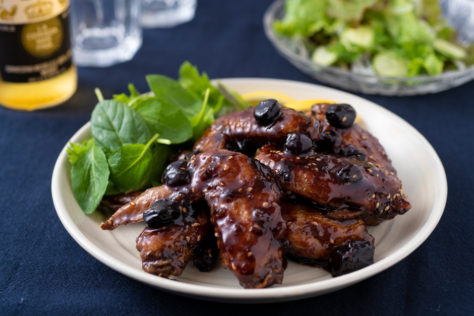 3.別の鍋にAを入れ中火にかけ、半量になるまで5分位煮詰める。揚げたての手羽先を漬けこみ、白ごまをふる。ベビーリーフと共に皿に盛り、レモンを添える。