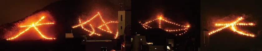 京都御所西、市内のほぼ中心に位置する当ホテル。年に一度だけ開放する屋上からは「大文字」をはじめとする「妙法」「舟形」「左大文字」のほぼすべてをご覧いただけます。ポツポツと静かに火が点る様子は、往く夏を惜しむ京都ならではの情緒を感じることができます。そんな五山送り火をお楽しみいただけるよう、特別イベントや特別ディナーをご用意しています。
