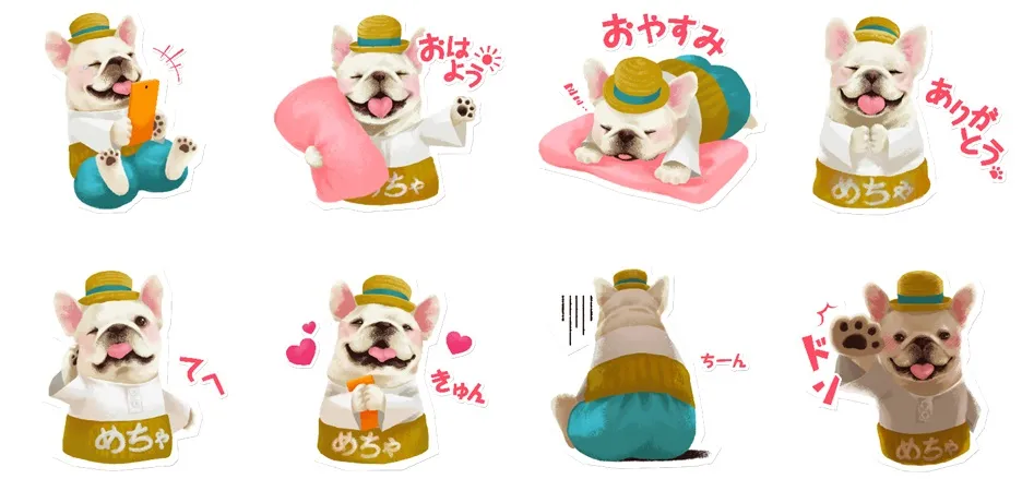 めちゃコミックの応援隊長である「めちゃ犬」は2014年からめちゃコミック(めちゃコミ)のTVCM出演をきっかけに話題となり、この度「めちゃ犬」をもっと身近に感じてもらおうとLINEスタンプを制作致しました。TVCMの「めちゃ犬」の雰囲気はそのままに、「おはよう」「おやすみ」などの定番挨拶から、「きゅん」「ちーん」などの感情表現も加え、多くの方に使っていただけるようなスタンプにしました。