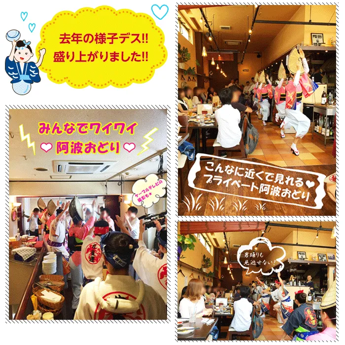 阿波おどりの演舞に食事、お飲み物、出会いが付いてこの価格!