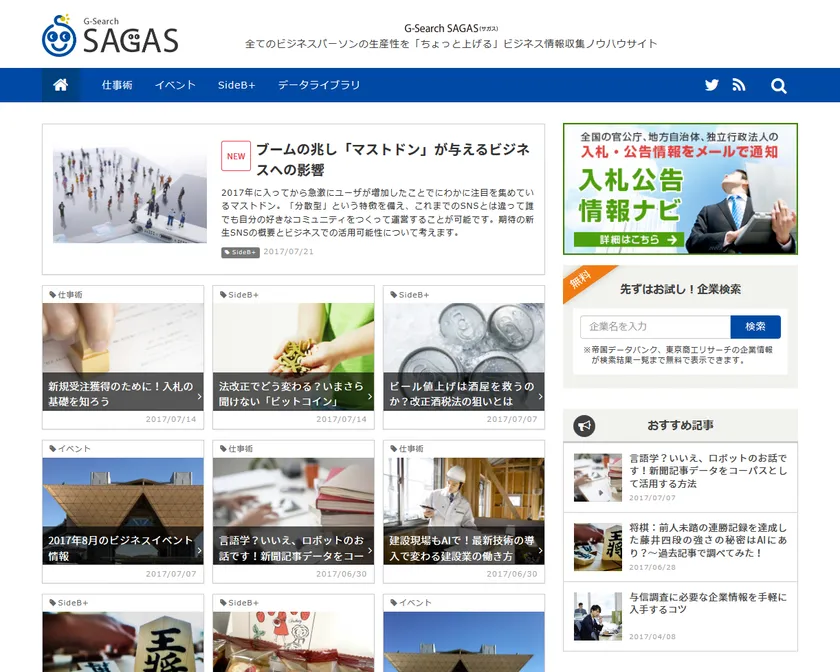 ビジネス情報収集サイト「G-Search SAGAS(サガス)」 2017年7月26日(水)にオープン