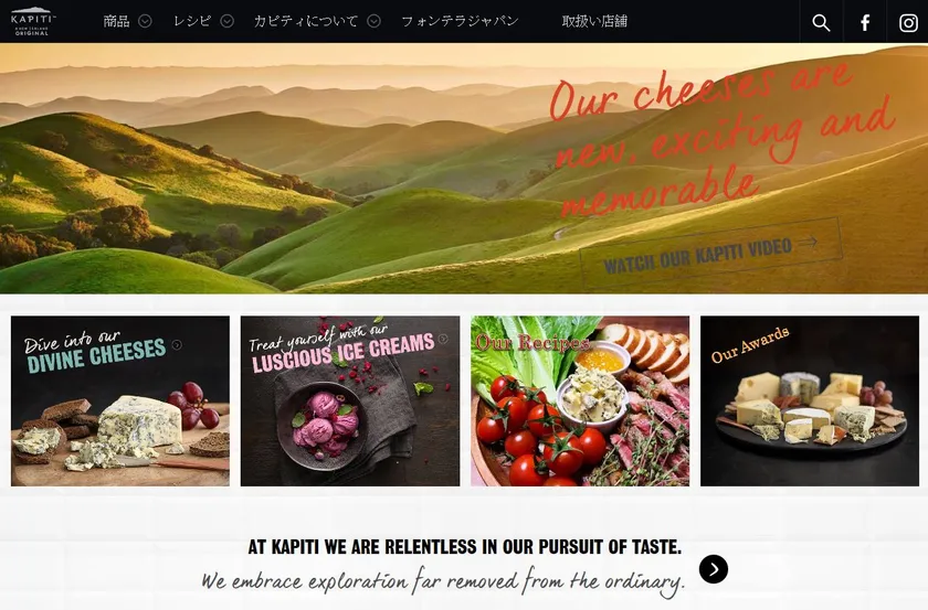 ニュージーランドの最高級チーズブランド カピティ(KAPITI)のWebサイトを公開