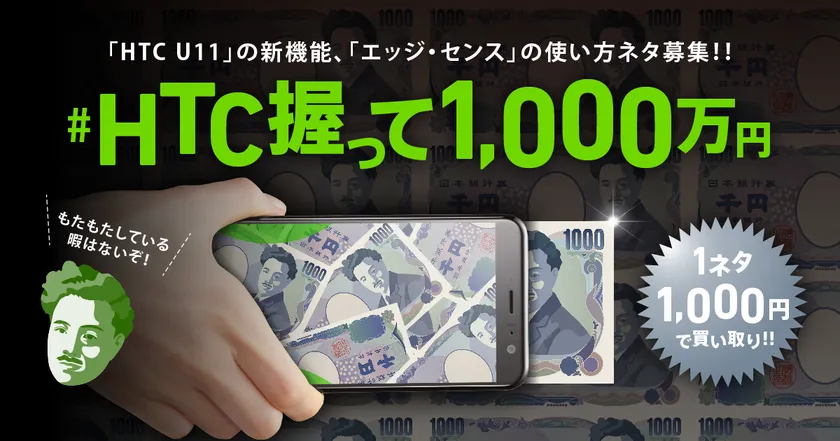 HTC NIPPONフラグシップスマホ「HTC U11」の新機能 「エッジ・センス」を使った新しいアイディア募集! 「#HTC握って1,000万円キャンペーン」を開始
