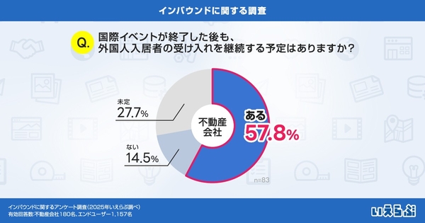 一方で、「国際イベントが終了した後も、外国人入居者の受け入れを継続する予定はありますか?」という質問には、「ある」と回答した企業が57.8%にのぼり、約6割がイベント後も外国人入居者の対応を継続する意向を示しました。