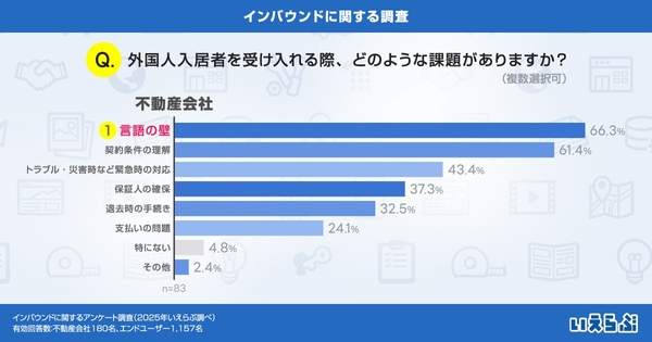 3.外国人入居者対応の課題、66.3%の不動産会社が「言語の壁」と回答、言語対応の整備が外国人対応の第一歩に