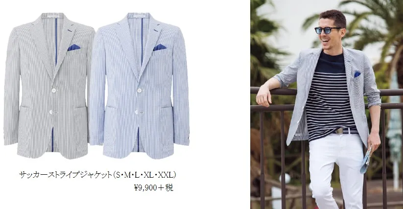 休日のお出掛けからクールビズスタイルまで、幅広いシーンで着回しが可能の「サッカーストライプジャケット」で、夏のコーディネートを楽しんでみませんか。