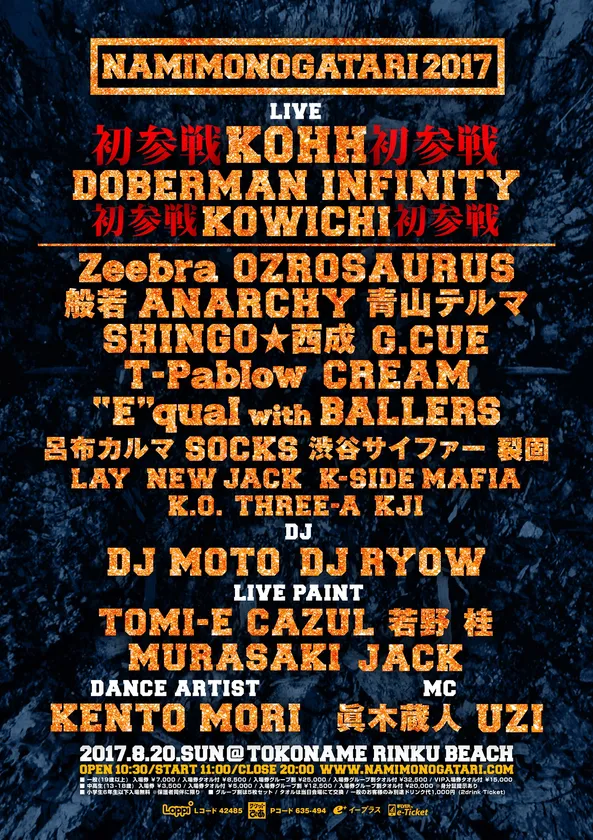 Zeebra/KOHH/OZROSAURUS/青山テルマら 日本HIPHOP界の有名アーティスト出演決定! 8/20開催、東海地区最大規模の野外ビーチフェスティバル 「NAMIMONOGATARI2017 "naaah meeean?」