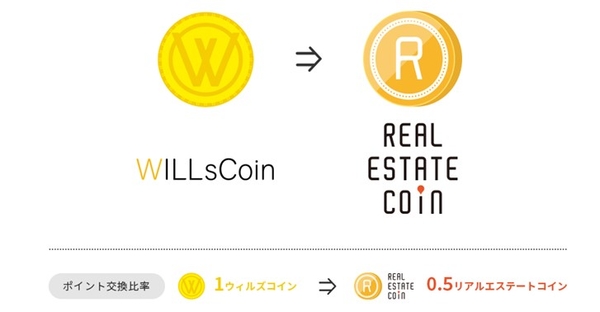 「WILLsCoin」2コインを「リアルエステートコイン」1コインに交換いたします。
