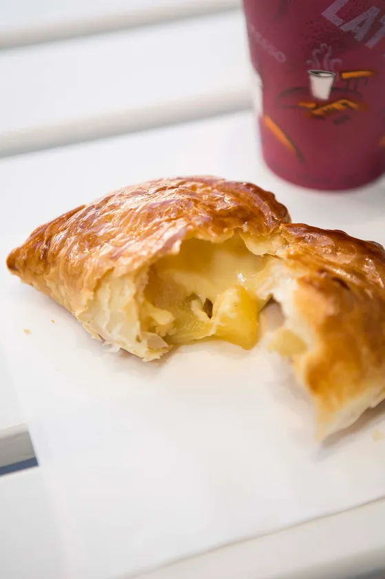 店舗内工房にて製造する主力商品である信州「カスタードアップルパイ」は信州産りんごの素材の良さを存分に味わっていただけるよう、りんご特有のシャキシャキ食感を出すために20mm角の大きめサイズにカットしたりんごを入れております。アップルパイに注入されるこだわりのカスタードクリームも全て信州産で、昭和25年から地元で愛される小布施牛乳と地元飯山のブランド卵を使用しております。りんごの生産地として有名な信州だからこそ食べられる鮮度の良いカスタードアップルパイを提供し、観光地長野から信州の素材の良さを発信していきます。まさに信州の味覚が詰まった「カスタードアップルパイ」です。