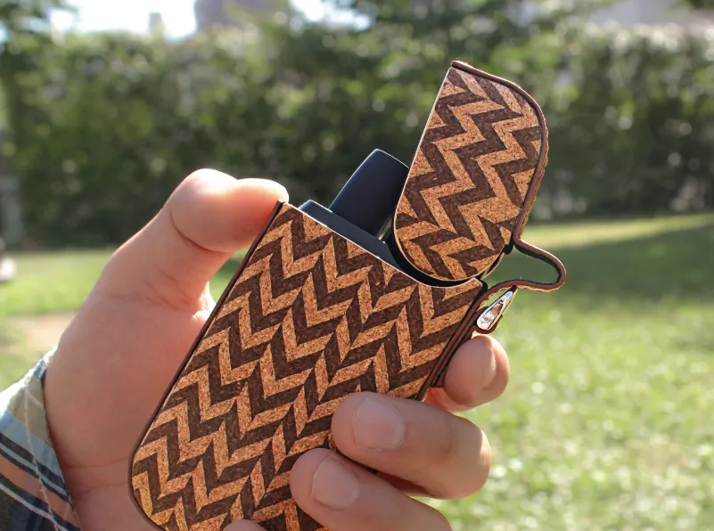 当製品ではこのコルク素材を初めてIQOS専用保護ケースに採用しました。軽くてしなやか、そして優しいコルク素材の風合いをお楽しみいただけます。