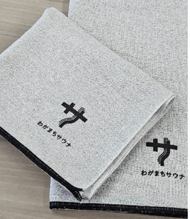 わがまちサウナと、兵庫・神戸の繊維問屋 MILLE(ミル)さんのコラボハンカチです。