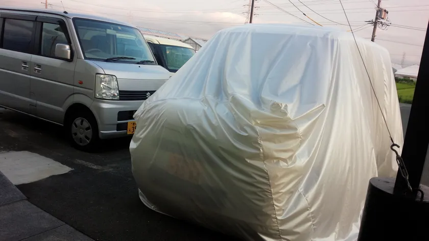 超撥水性と高い耐水圧性で台風・豪雨から愛車を守る! 水ピタ防水シート製自動車カバーを8月4日より受注販売開始