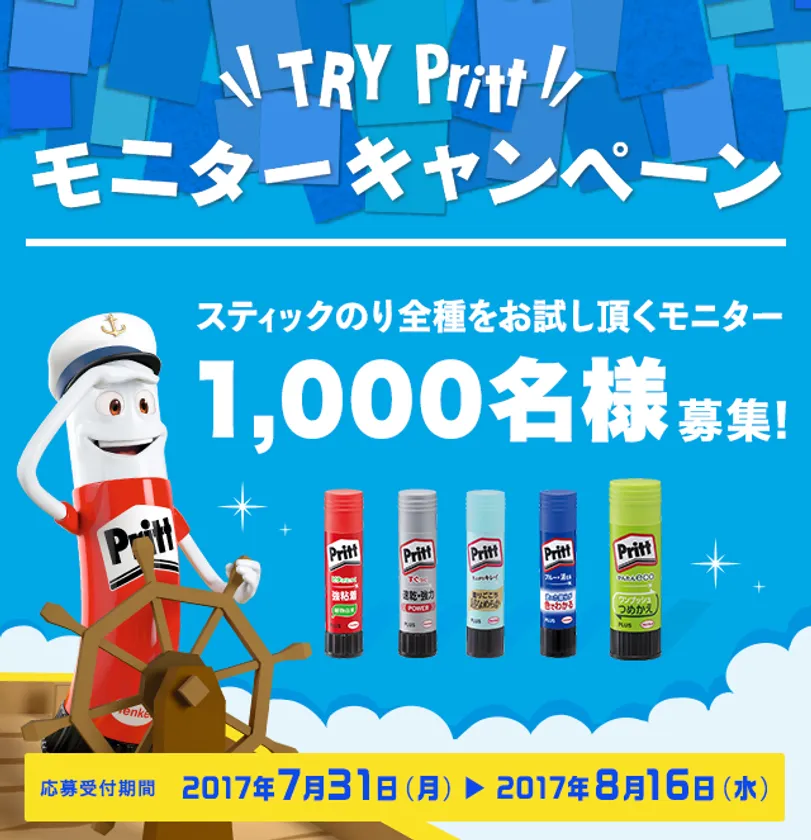 スティックのり『Pritt』体験モニター1,000名様大募集! TRY! Pritt キャンペーン実施